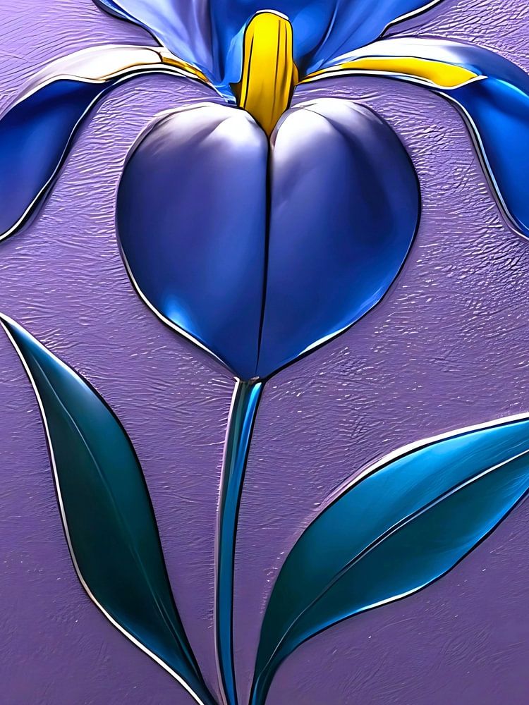 Ein beeindruckendes digitales Kunstwerk, das die Eleganz und Lebendigkeit der Irisblume (Schwertlilie) in moderner, stilisierter Form einfängt.