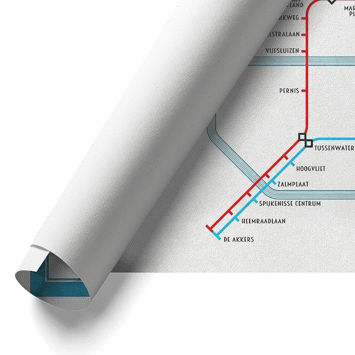 Eine Karte des Rotterdamer U-Bahn-Netzes, inspiriert von der legendären Karte der Londoner U-Bahn von Harry Beck aus dem Jahr 1934.