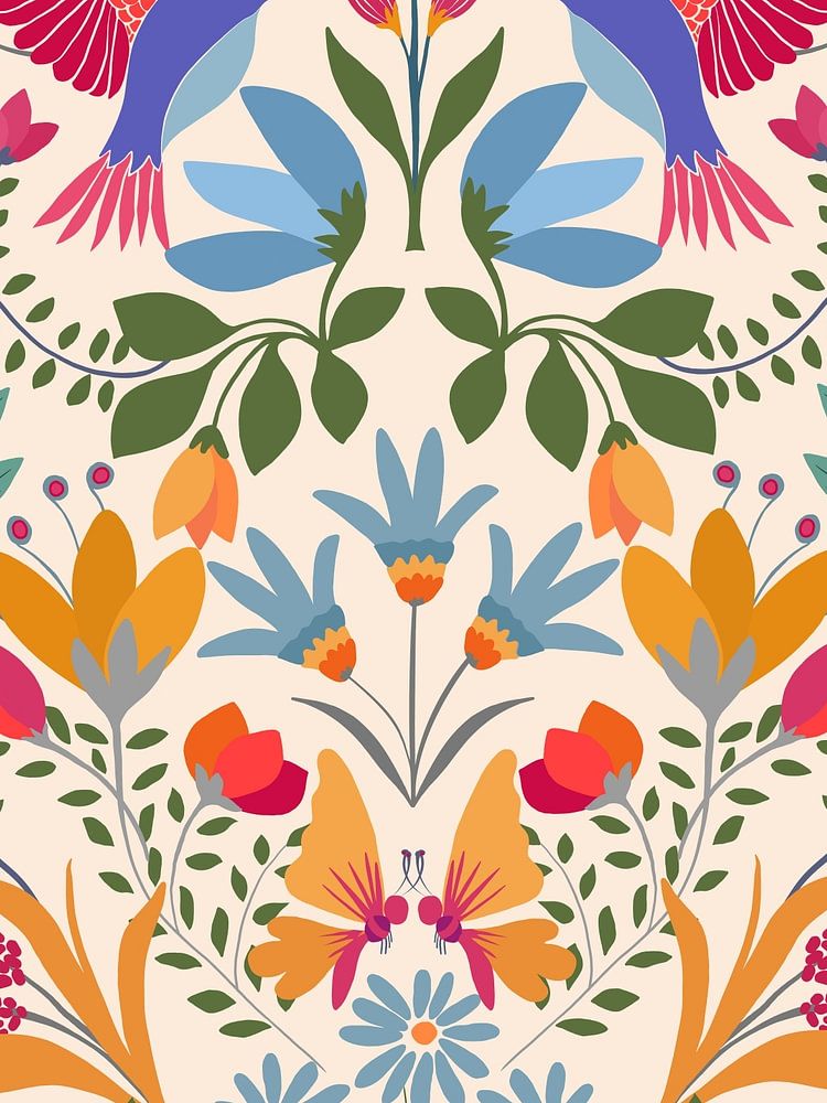 Dieses mexikanische Kunstwerk, inspiriert von dem reichen kulturellen Erbe der Otomi, ist eine Hommage an die Natur und präsentiert eine harmonische Mischung aus komplexen Vogel- und Blumenmotiven. Die Leinwand explodiert förmlich vor strahlenden Farbtönen, von kräftigem Rot und tiefem Blau bis zu lebendigen Gelb- und Grüntönen, und schafft so eine lebendige Komposition. Die sorgfältige Ausgestaltung von Otomi-inspirierten Mustern verleiht dem Kunstwerk einen Hauch traditionellen Charmes, während die anmutig dargestellten Vögel und Blumen ein Gefühl von Vitalität und natürlicher Schönheit hervorrufen.