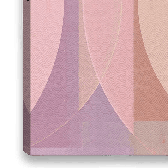 Bestelle dieses abstrakte Wandbild Mid Century Bauhaus Formen Ocker Rosa Pfirsich von FRESH Fine Art als Reproduktion auf Leinwand, Alu-Dibond, als Poster, Fototapete oder Acrylglasbild.
