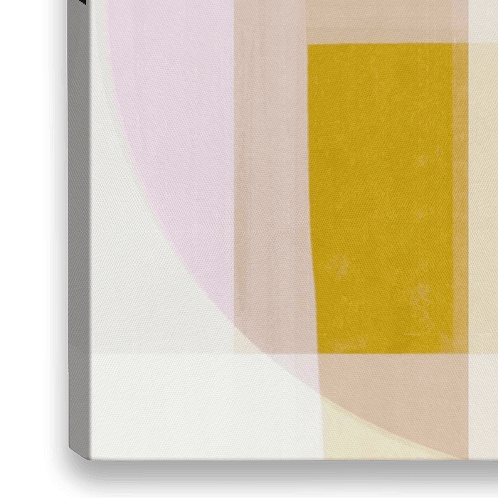 Bestelle dieses abstrakte Wandbild Mid Century Bauhaus Formen Rosa Ocker Pastell von FRESH Fine Art als Reproduktion auf Leinwand, Alu-Dibond, als Poster, Fototapete oder Acrylglasbild.