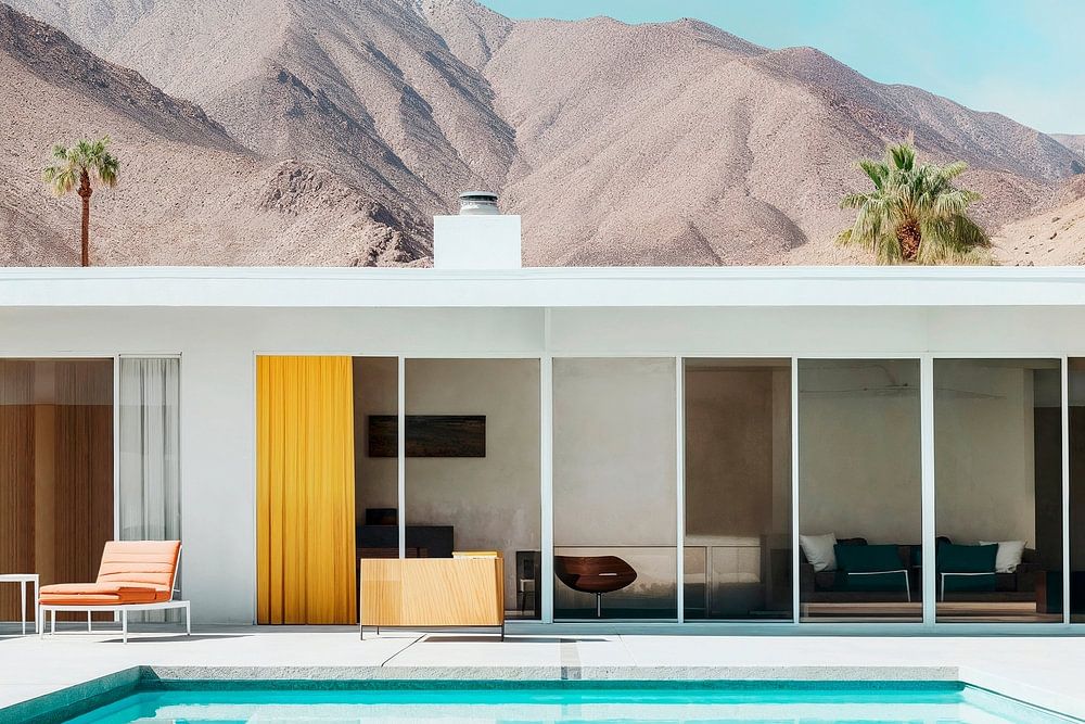 Die modernen Mid-Century-Häuser von Palm Springs mit ihren klaren Linien und ihrem avantgardistischen Design werden in dieser Kollektion hervorgehoben und spiegeln die ikonische Architektur der Stadt wider. Jedes Bild scheint die Zeit im goldenen Zeitalter dieses einzigartigen Architekturstils einzufrieren.