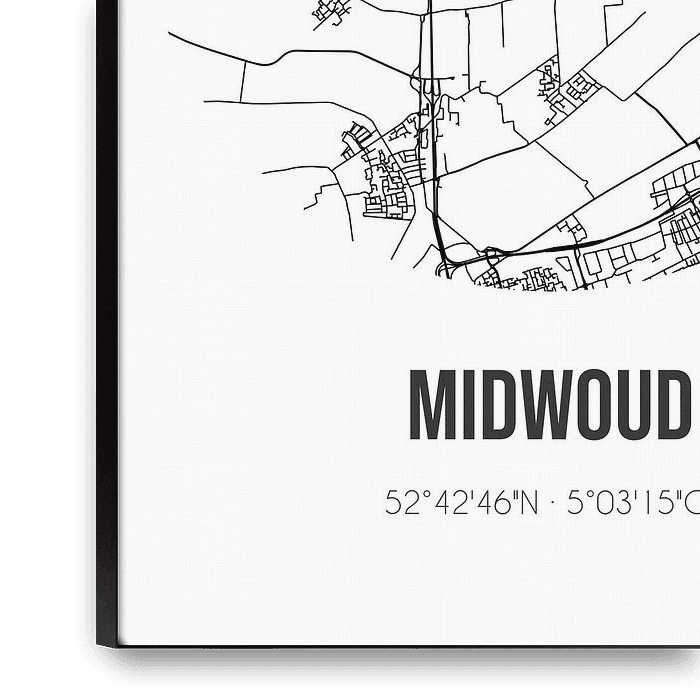 Bestelle diese Illustration Midwoud (Noord-Holland) | Karte | Schwarz und Weiß von Ortsdrucke als Reproduktion auf Leinwand, Alu-Dibond, als Poster, Fototapete oder Acrylglasbild.