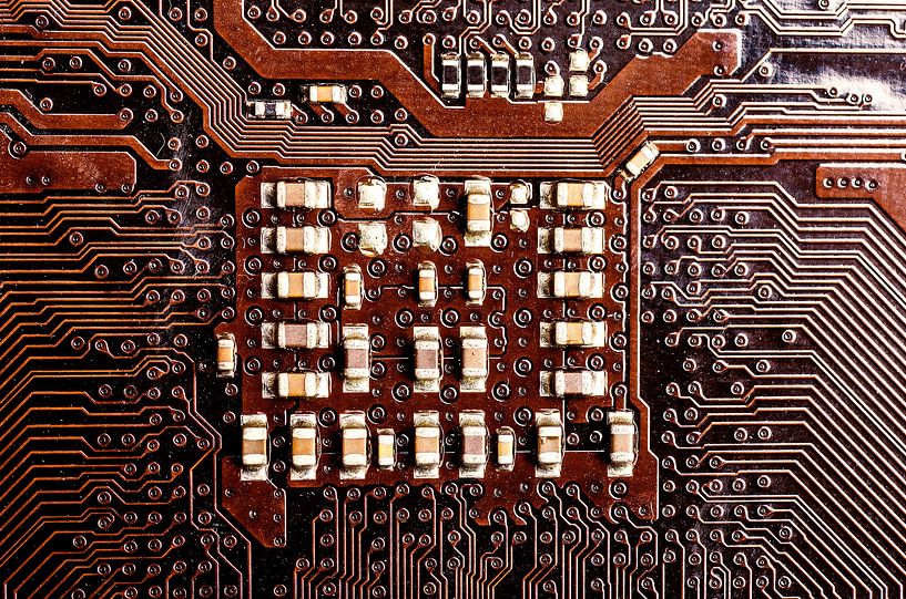 Bestelle dieses abstrakte Wandbild Mikroelektronik auf Leiterplatte von Alexander Baumann als Reproduktion auf Leinwand, Alu-Dibond, als Poster, Fototapete oder Acrylglasbild.
