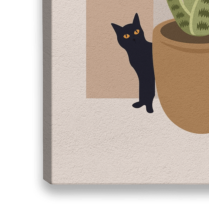 Bestelle diese Illustration Minimale Kunst einer Katze hinter einem einfachen Blumentopf von RickyAP als Reproduktion auf Leinwand, Alu-Dibond, als Poster, Fototapete oder Acrylglasbild.