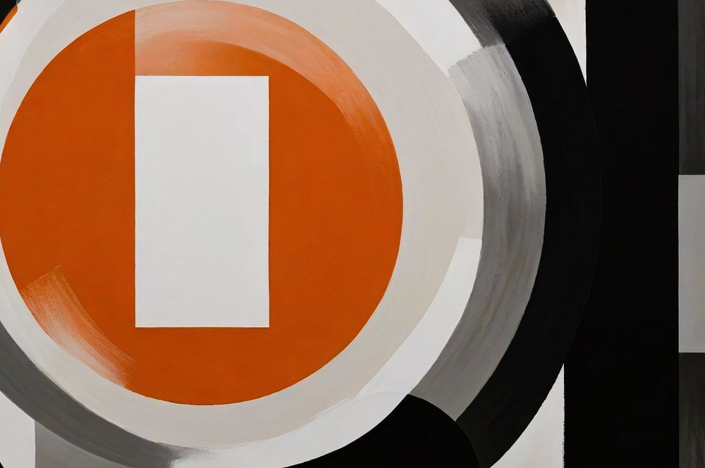 Dieses kraftvolle Werk verbindet die Einfachheit und Präzision minimalistischer Kunst mit einer kräftigen Farbgebung. Die schwarzen, weißen und orangefarbenen Oberflächen spielen mit Wahrnehmung und Form, während Kreise und Quadrate in dynamischer Harmonie zusammenkommen. Perfekt für das moderne Wohnzimmer oder das Büro, verleiht dieses Design jedem Raum einen Hauch von raffinierter Abstraktion. Das Gleichgewicht zwischen Farbe und monochromen Elementen macht es zu einer vielseitigen Wahl für eine Vielzahl von Einrichtungsthemen, von schlicht und modern bis warm und einladend.