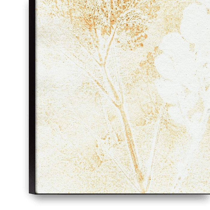 Bestelle dieses abstrakte Wandbild Minimalistische Pflanzen Gelb Orange von Lies Praet als Reproduktion auf Leinwand, Alu-Dibond, als Poster, Fototapete oder Acrylglasbild.