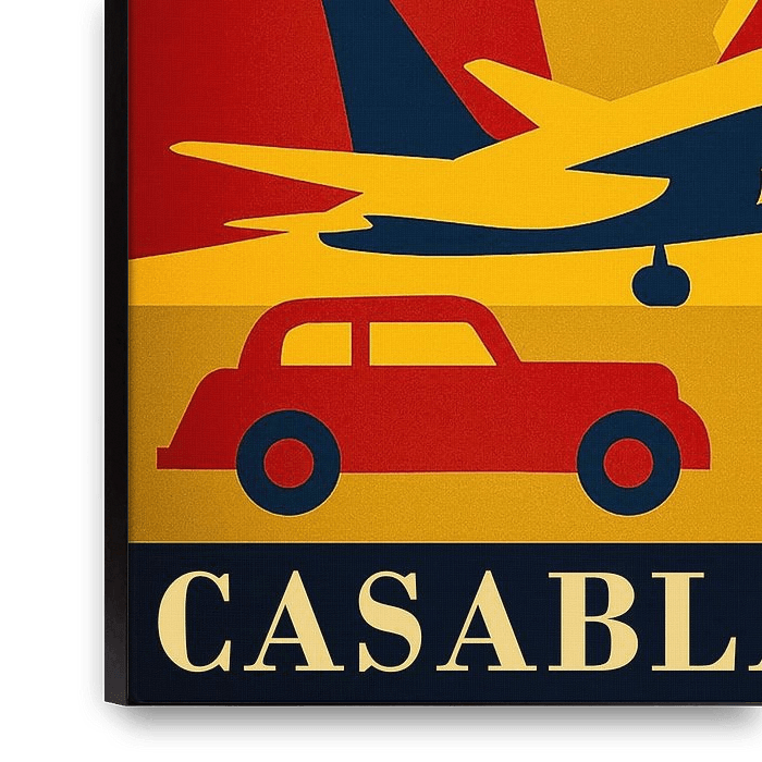 Bestelle dieses Art Deco-Wandbild Minimalistische flache Illustration Plakat Casablanca 1942 von Ani Mulyani als Reproduktion auf Leinwand, Alu-Dibond, als Poster, Fototapete oder Acrylglasbild.
