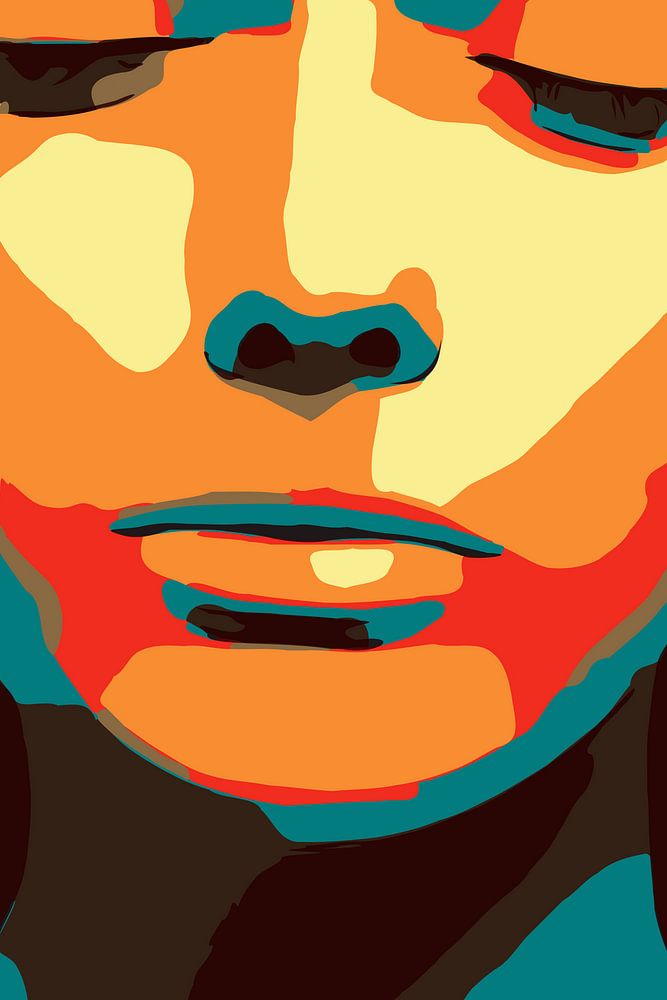 digital, Minimalismus, zeitgenössische Kunst, zeitgenössische, Menschen, Frau, Gesicht, Pop-Art, Frontalansicht, Mund, Lippen, geschlossene Augen, heiter, urban, oben, beste, minimalistische, minimalistische, minimale Kunst, Design, Interieur, Architektur, Mode, Wohnkultur, einfach, Schlichtheit, Interieur, handgemacht, Stil, Klasse, Lessismore, kreativ, Grafik, Yoga