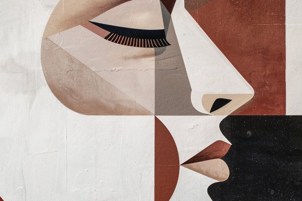 Dieses stilvolle Design verbindet die klaren Linien des Art déco mit einer modernen Ästhetik. Das in abstrakte Formen und subtile Farbtöne unterteilte Gesicht zieht die Blicke auf sich und hält sie fest. Mit seinem monochromen Sockel, der durch braune und rote Akzente belebt wird, ist dieses Kunstwerk eine Bereicherung für jedes Interieur. Die Komposition wurde sorgfältig ausgewählt, so dass das Gesamtbild sowohl dynamisch als auch beruhigend wirkt. Dieses Kunstwerk würde in einem minimalistisch gestalteten Raum nicht fehl am Platz wirken, könnte aber auch einem eklektischen Interieur einen modernen Touch verleihen. Kurzum, ein vielseitiges Design, das immer wieder aufs Neue fasziniert.