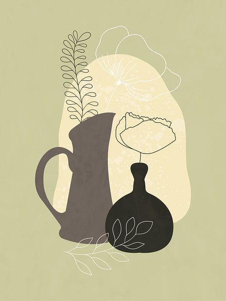 Minimalistisches Stillleben mit einem Krug und einer Vase von Tanja Udelhofen