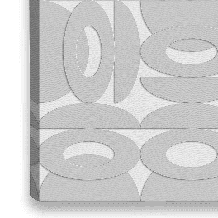 Bestelle dieses abstrakte Wandbild Minimalistisches geometrisches Muster mit 3D-Ovalen und Halbkreisen in Grau von Dina Dankers als Reproduktion auf Leinwand, Alu-Dibond, als Poster, Fototapete oder Acrylglasbild.