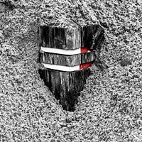 Bestelle dieses abstrakte Wandbild Mit Sand bedeckte Verkehrspoller von Jan Hermsen als Reproduktion auf Leinwand, Alu-Dibond, als Poster, Fototapete oder Acrylglasbild.