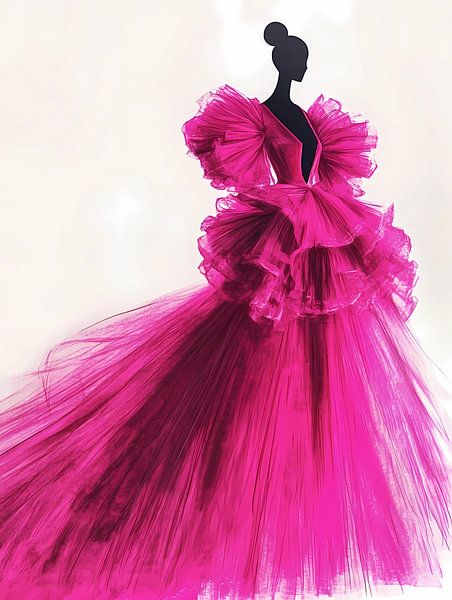 Bestelle das digitale Kunst Bild Mode Rosa Kleid von IamHome Studio als Reproduktion auf Leinwand, Alu-Dibond, als Poster, Fototapete oder Acrylglasbild.