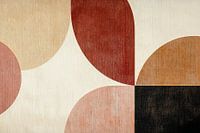 Dieses minimalistische abstrakte Kunstwerk strahlt durch geometrische Formen in einer warmen, erdigen Farbpalette Ruhe und Harmonie aus. Halbkreise und Rechtecke in Braun, Schwarz, Rosa und Orange kontrastieren mit einem hellbeigen Hintergrund. Subtile Texturen sorgen für Tiefe, während die symmetrische Komposition für Ausgewogenheit…