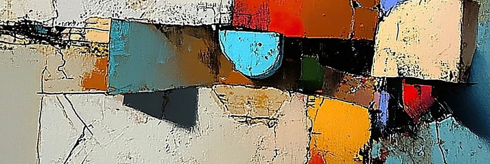Details: abstrakt, Geometrie, moderne Kunst, beruhigend, blau, rot, ocker, heiter, farbenfroh, Ruhe Farben: blau, rot, ocker, weiß,…