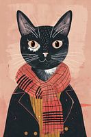 Moderne Illustration einer Katze mit Halstuch von Imperial Art House