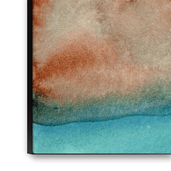 Moderne abstrakte minimalistische Landschaftsmalerei in Türkis, Blau, Braun und Weiß.