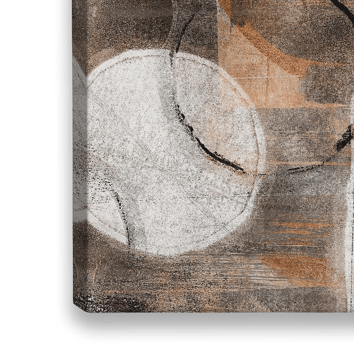 Bestelle dieses abstrakte Wandbild Moderne abstrakte Formen und Linien in Erdtönen. Rostbraune und weiße Kreise. von Dina Dankers als Reproduktion auf Leinwand, Alu-Dibond, als Poster, Fototapete oder Acrylglasbild.