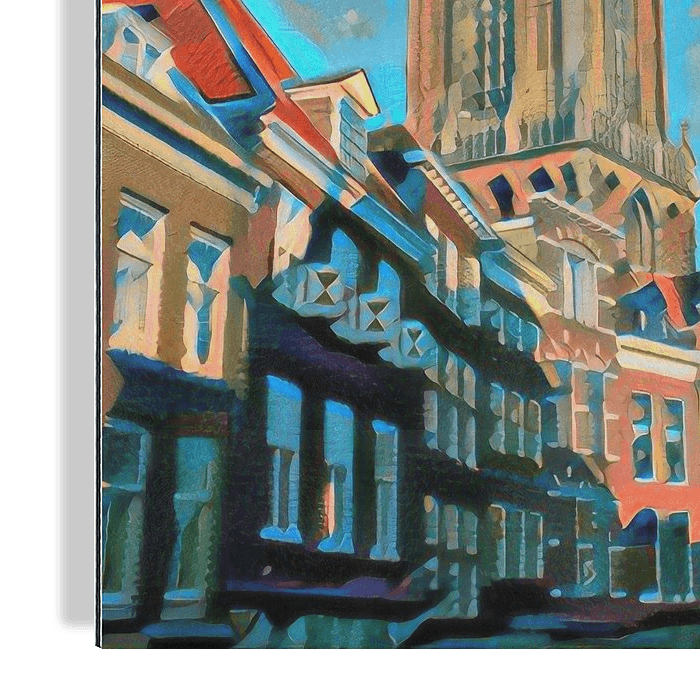 Wir machen Kunst mit künstlicher Intelligenz. Unser Algorithmus beherrscht verschiedene Malstile. Zum Beispiel expressionistisch oder vom Kubismus inspiriert! Wir malen bekannte Orte der großen niederländischen Städte mit unserem Algorithmus. Die Groningen Hoge der Aa im Stil von Van Gogh. Die Rotterdamer Erasmusbrücke im Stil von Picasso. Oder die Grachtenhäuser, als ob Piet Mondrian bei der Arbeit gewesen wäre!