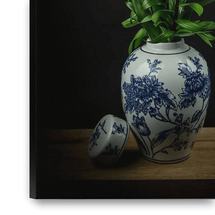 Ihre gewählte Kunst auf Leinwand, gespannt in einem Aluminiumrahmen. Schnell und einfach austauschbar für eine frische Ausstrahlung und ganz nach Ihren Wünschen.