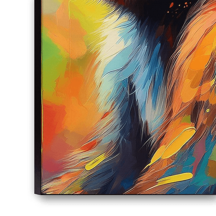 Farbenfrohes, modernes und abstraktes Porträt mit Öl-Akzenten. Ein besonderer Blickfang für Ihr Interieur! Ein Affe mit Kopfhörern. Wählen Sie das Format und das Material für dieses Werk und machen Sie es zu Ihrem eigenen.