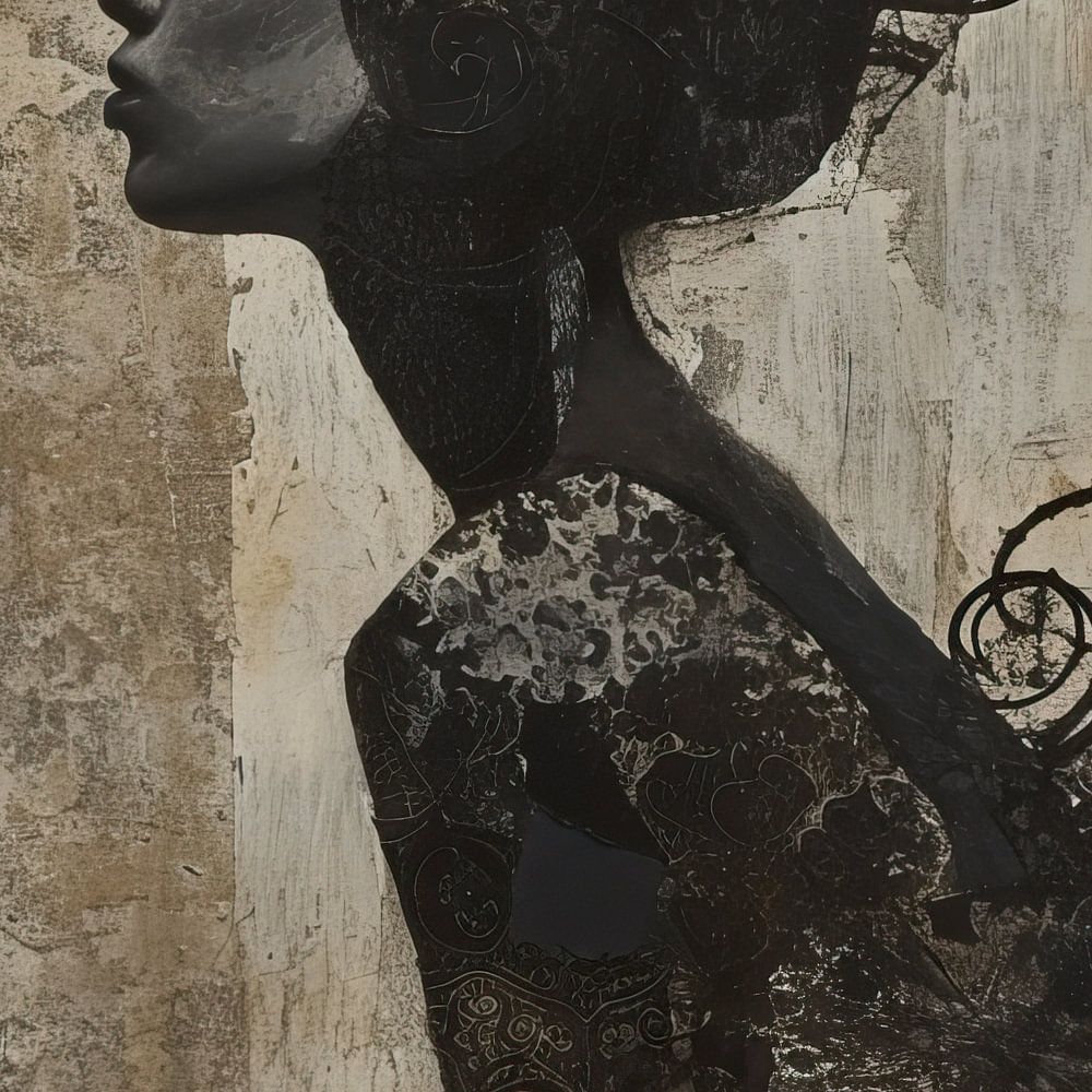 Details: Frau, Silhouette, Muster, modern, Textur, Kunst, schwarz, weiß, beige
