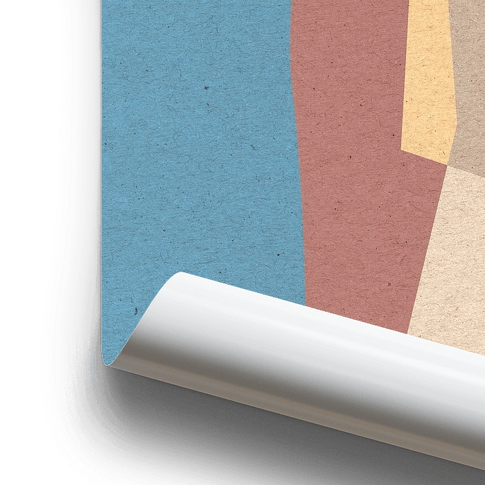 Serie von Kunstwerken mit abstrakten geometrischen Mustern und geschwungenen organischen Formen. Die hellere Farbpalette und die gealterte Textur schaffen eine retro-zeitgemäße Atmosphäre.