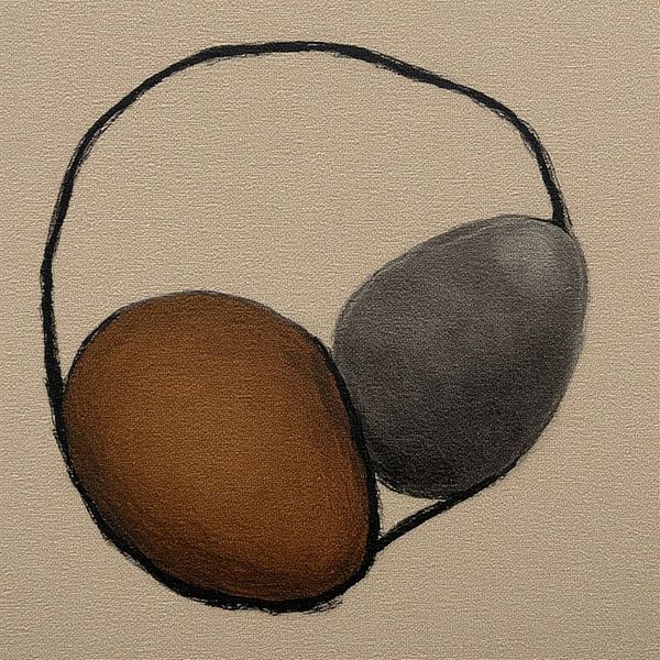 eine abstrakte organische kraftvolle Kreise Felsen Steinform braun und hell mittelgrau mit schwarzer Linie Zeichnung auf einem beige Hintergrund Relief strukturiertes Papier moderne abstrakte minimalsme wabi sabi japandi Arbeitsplatz Büro.
