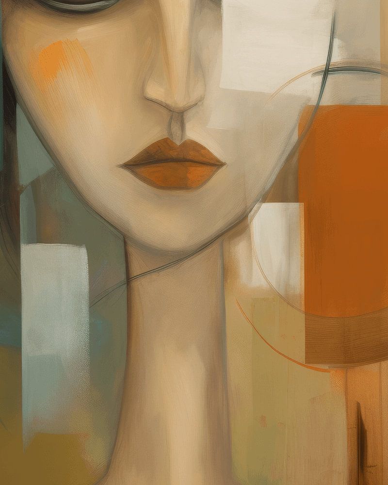 Modernes abstraktes Porträt einer Frau in Erdtönen. Ein echter Blickfang für Ihr Interieur. Wählen Sie das Format und das Material selbst und gestalten Sie dieses Werk ganz nach Ihren Wünschen.