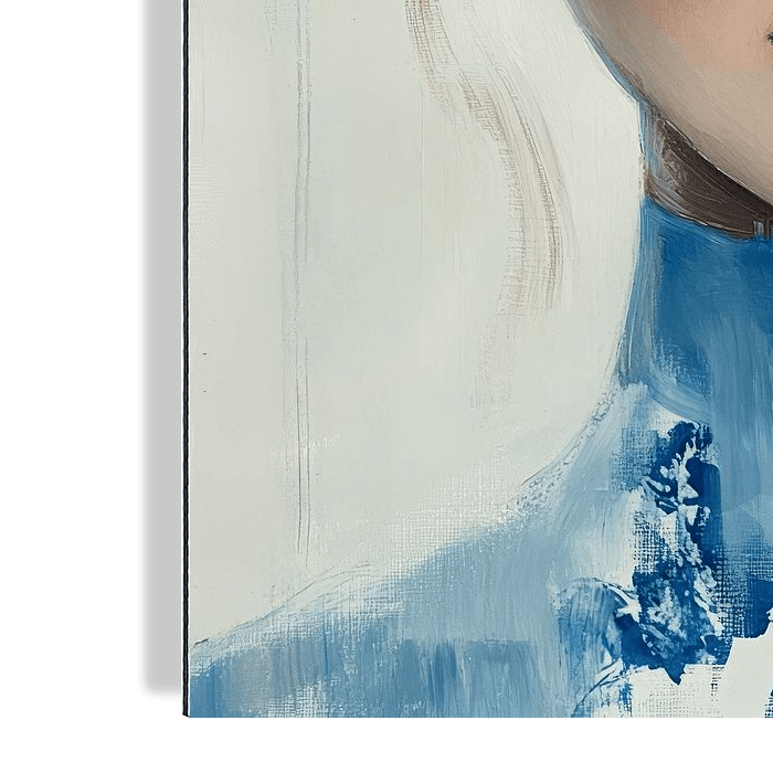 Modernes abstraktes Porträt in Delfter Blau. Ein besonderer Blickfang für Ihr Interieur! Wählen Sie Ihre eigene Größe und Material für dieses Werk und machen Sie es zu Ihrem eigenen.