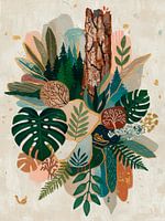 Bestelle dieses abstrakte Wandbild Modernes biophiles Design mit Monstera und Farnen von Studio Pieternel als Reproduktion auf Leinwand, Alu-Dibond, als Poster, Fototapete oder Acrylglasbild.
