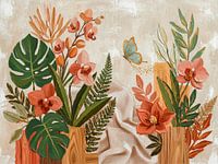 Bestelle dieses Schmetterling-Wandbild Modernes biophiles Design mit Orchideen und Monstera von Studio Pieternel als Reproduktion auf Leinwand, Alu-Dibond, als Poster, Fototapete oder Acrylglasbild.