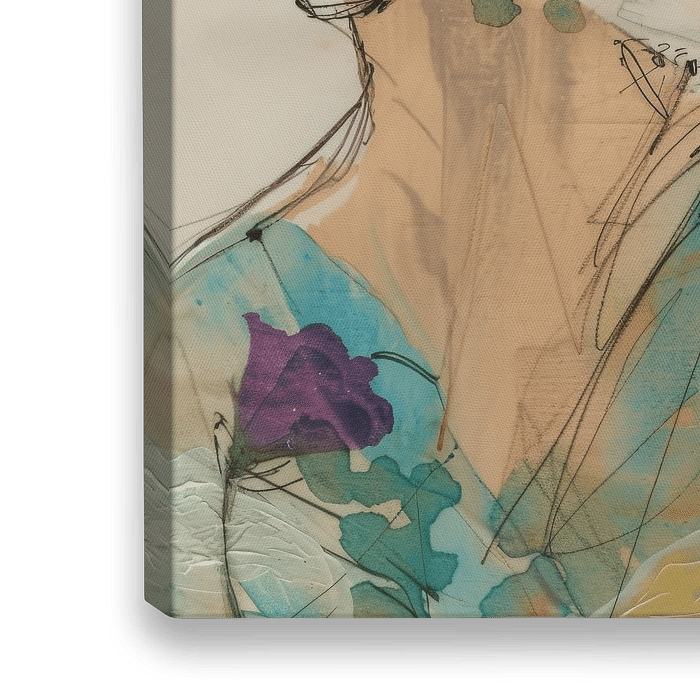 Modernes und abstraktes Porträt in Rosa, Gelb und Türkis. Wählen Sie Ihre eigene Größe und Material für dieses Werk und machen Sie es zu einem besonderen Blickfang für Ihr Interieur.