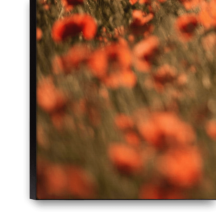 Bestelle dieses Landschafts-Wandbild Mohnblumen - Feurig rot von Marjan van Herpen als Reproduktion auf Leinwand, Alu-Dibond, als Poster, Fototapete oder Acrylglasbild.