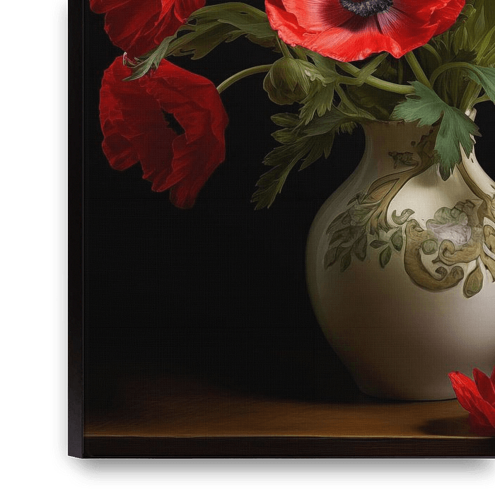 Bestelle das digitale Kunst Bild Mohnblumen-Stillleben von Imagine als Reproduktion auf Leinwand, Alu-Dibond, als Poster, Fototapete oder Acrylglasbild.