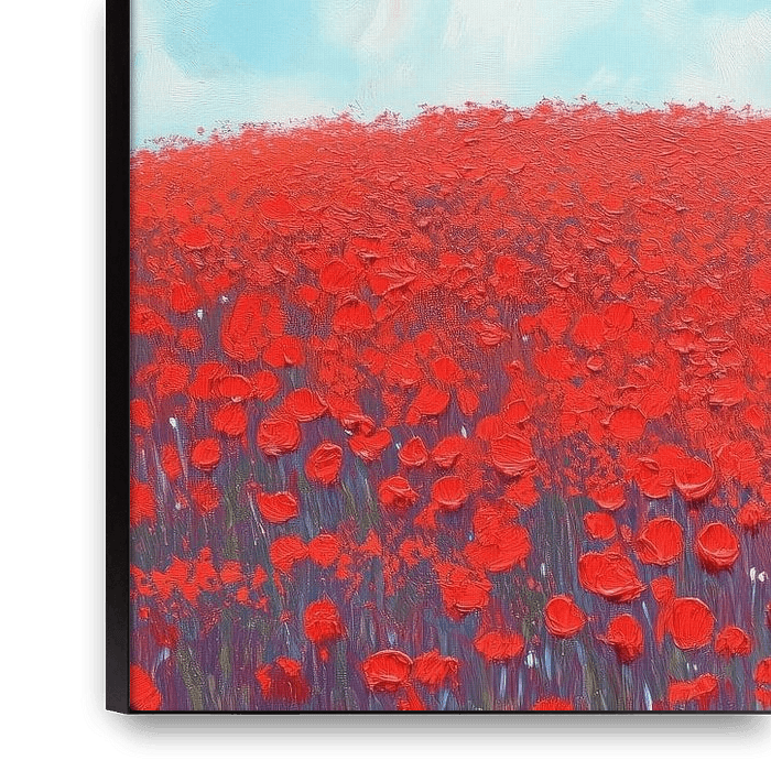 Bestelle diese Malerei Mohnblumenfeld mit Baum von ARTemberaubend als Reproduktion auf Leinwand, Alu-Dibond, als Poster, Fototapete oder Acrylglasbild.