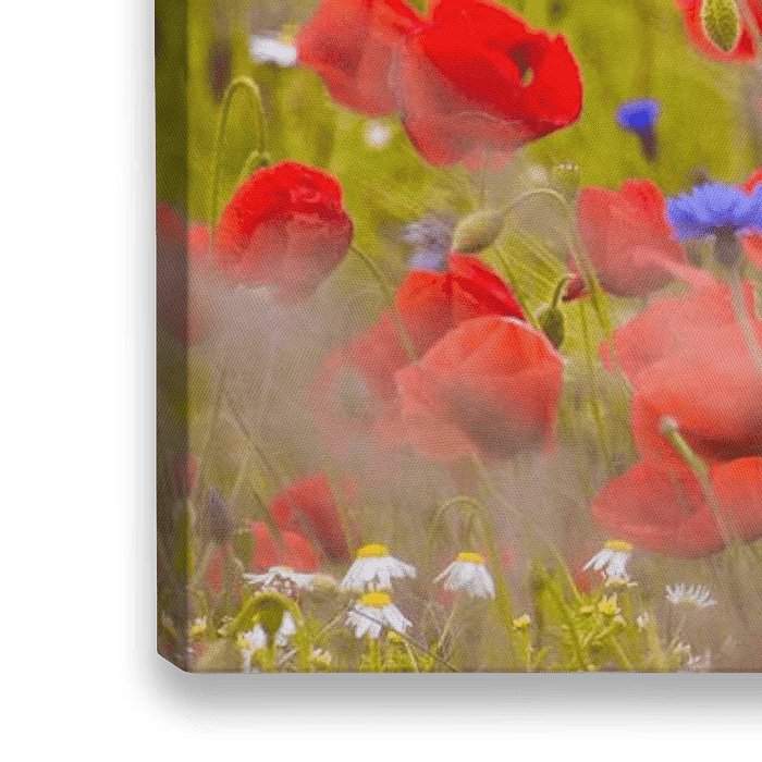 Bestelle dieses Blumen-Wandbild Mohnblumenfeld von Uwe Merkel als Reproduktion auf Leinwand, Alu-Dibond, als Poster, Fototapete oder Acrylglasbild.