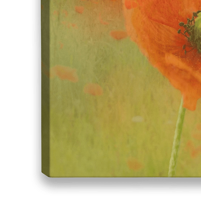 Bestelle dieses Blumen-Wandbild Mohnfantasie (Bildbearbeitung einer Nahaufnahme von Mohnblumen und einem Mohnfeld) von Birgitte Bergman als Reproduktion auf Leinwand, Alu-Dibond, als Poster, Fototapete oder Acrylglasbild.