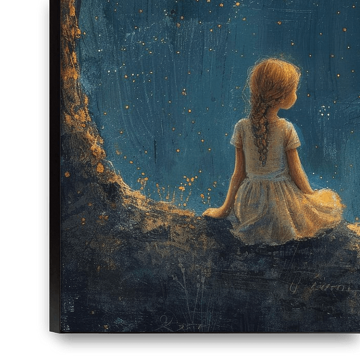 Begeben Sie sich auf eine himmlische Reise mit unserem Kunstwerk Sternenhimmel. Der Mond wirft sein sanftes Licht auf eine Leinwand aus funkelnden Sternen und schafft so ein faszinierendes nächtliches Spektakel. Dieses bezaubernde Werk fängt die Magie der Nacht ein und lädt Sie ein, in die ruhige Schönheit einer himmlischen…