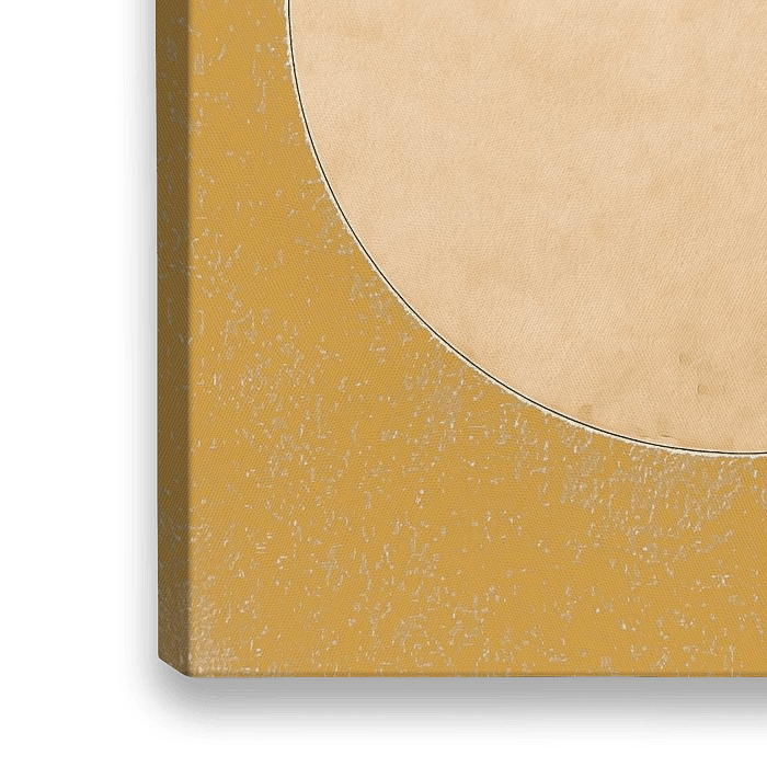 Eine minimalistisch abstrakte Darstellung des Vollmonds in sanftem Licht in neutralen Beige Farben auf goldenem Hintergrund.