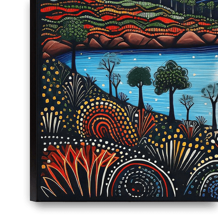 Die von den Aborigines inspirierte pointillistische Serie ist ein tiefes Zeugnis für den Geist der natürlichen Landschaft und ein Teppich künstlerischen Ausdrucks. Diese Kollektion lädt den Betrachter zu einer eindringlichen Pilgerreise durch Leinwände ein, die von uralten Erzählungen und dem rhythmischen Herzschlag der Erde pulsieren.…