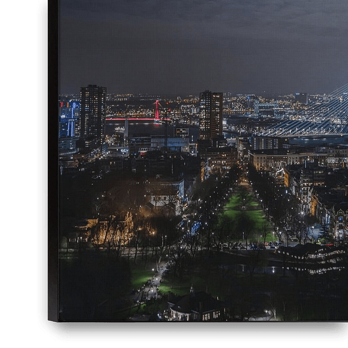 Bestelle dieses Rotterdam-Wandbild Mondlicht über Rotterdam - Die Stadt leuchtet von Hendrik Karremans als Reproduktion auf Leinwand, Alu-Dibond, als Poster, Fototapete oder Acrylglasbild.