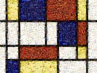 Moderne abstrakte Kunst im Stil von Mondrian in Weiß, Schwarz, Rot, Blau und Gelb.