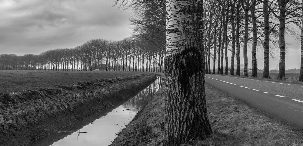 Straße mit Bäumen und Wasser Seite an Seite im Norden Hollands.
