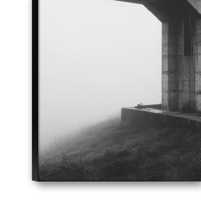Ein kraftvolles Schwarz-Weiß-Porträt eines imposanten brutalistischen Bauwerks, das sich wie ein vergessenes Denkmal aus dem Nebel erhebt. Seine rauen Betonformen und dramatischen Linien unterstreichen die architektonische Schönheit der verlassenen Moderne. Dieses Bild strahlt einen Hauch von Geheimnis, Entfremdung und Macht aus, perfekt für Liebhaber abstrakter Architektur, Minimalismus und postapokalyptischer Ästhetik.