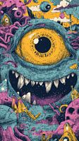 Bestelle dieses abstrakte Wandbild Monster-Fantasy-Illustration in psychedelischen Farben von Eva Lee als Kunstdruck auf Leinwand, Alu-Dibond, als Poster, Fototapete oder Acrylglasbild.