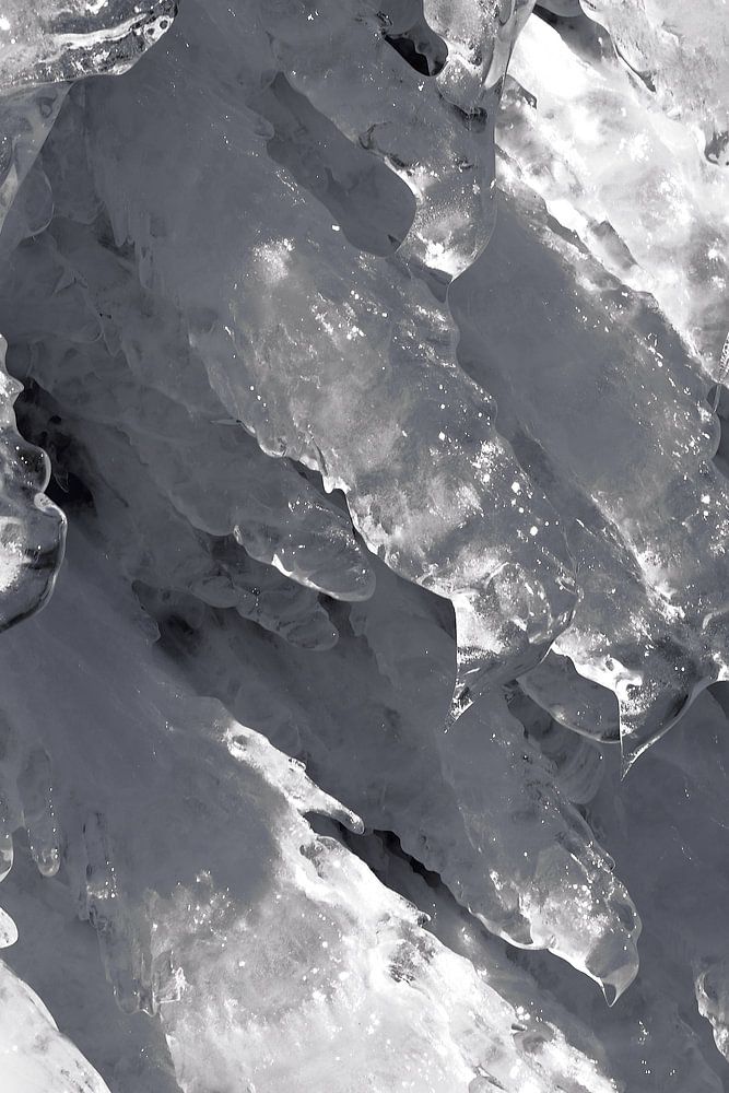 Eisdetail, Bergkette des Mont-Blanc-Massivs in den französischen Alpen. Farbfotografie, aufgenommen mit meiner Nikon-Ausrüstung an einem sonnigen Tag. Alle Serien in meiner Sammlung ansehen Höhe: https://www.luciboreali.com/altitude