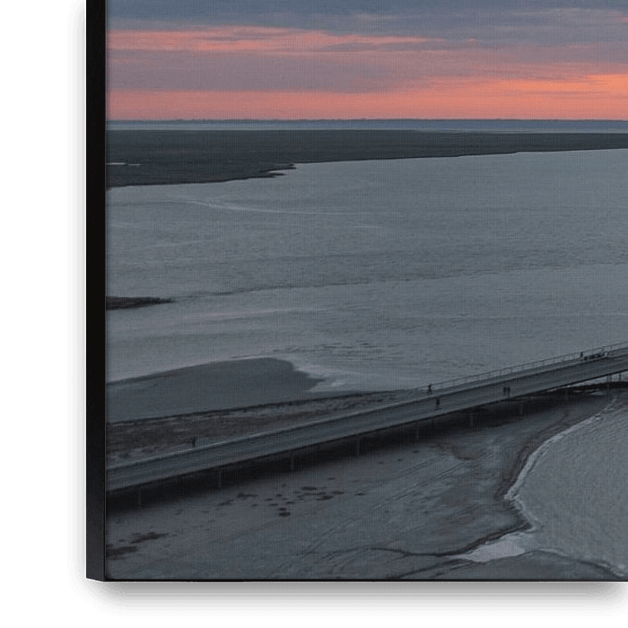 Bestelle das Foto Mont Saint Michel bei Sonnenuntergang von Easycopters als Reproduktion auf Leinwand, Alu-Dibond, als Poster, Fototapete oder Acrylglasbild.