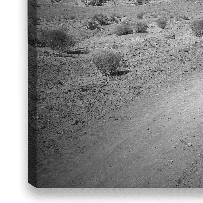 Bestelle dieses Landschafts-Wandbild Monument Valley Drive s/w von Melanie Viola als Reproduktion auf Leinwand, Alu-Dibond, als Poster, Fototapete oder Acrylglasbild.